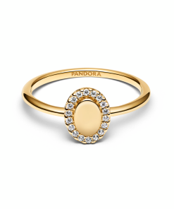 Engravable 14k gold-plated ring with clear cubic zirconia