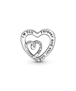 Love shines in the Entwined Infinite Hearts Charm. Crafted in sterling silver. it features one heart swirling into another with the engraving: I love You Forever and ever and ever and ever and ever and ever. A gift that symbolises the unbreakable bond between a mother and child.