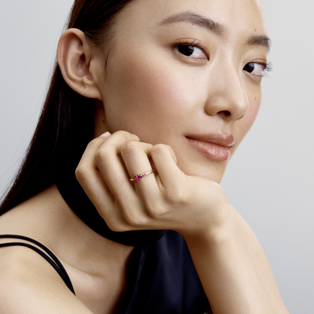 Heart 14k gold-plated ring with cherries jubilee red crystal