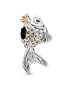 Get ready to cast your style net with this fish charm in sterling silver. Adding fantasy and fairy tale to Pandora Moments bracelets. the detailed design is inspired by an ancient Russian folk tale. Coloured stones and a 14k gold crown complete the piece.
