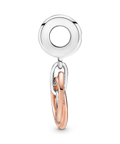 A powerful symbol of unbreakable love. the Family Always Encircled Dangle Charm features two entwined 14k rose gold-plated circles. one of which is decorated with clear cubic zirconia pavé. A sterling silver disc dangling from the bail is engraved with the words ALWAYS TOGETHER. The harmony of shapes and metal tones in this charm symbolises how we come together as a family despite our differences.