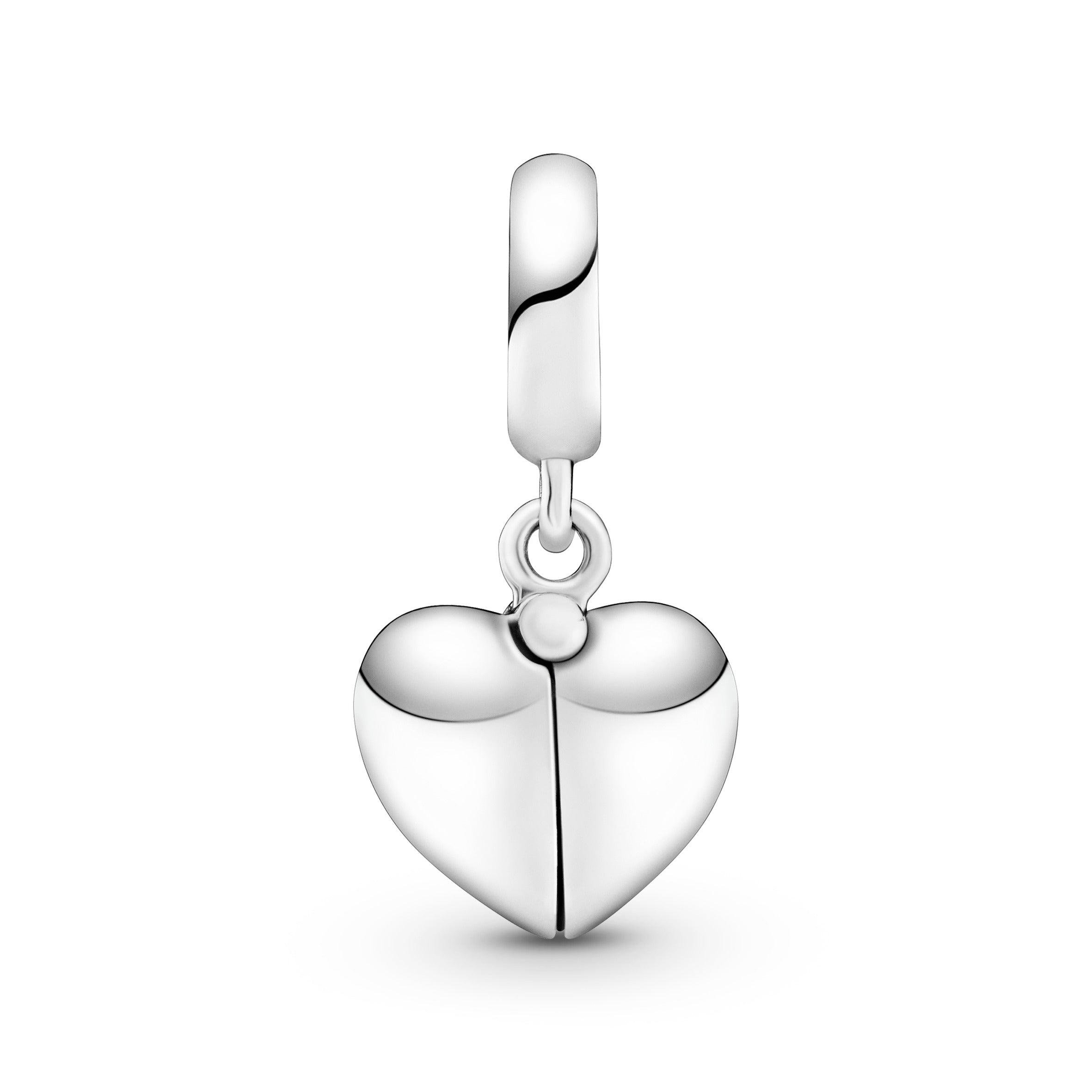 Keep family close to you with this engraved charm. Shaped as a heart locket that opens to reveal the word Family. the polished sterling silver dangle charm is set with a pink crystal as a shining tribute to the love you share. Wear it on your Pandora Moments bracelet to bring meaning to your styling. or gift to a special woman in your life.