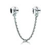 Keep your charms safe and stylish with the Family Heart Safety Chain Charm. This two-tone safety chain charm is hand-finished in sterling silver and 14k rose gold-plated metal. It features two dangling hearts. one warm-toned open heart with an infinity sign and a second heart-shaped sterling silver disc engraved with Family on the front. A clip charm on each end includes a line of clear cubic zirconia. finishing off the look in sparkling style.
