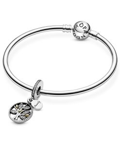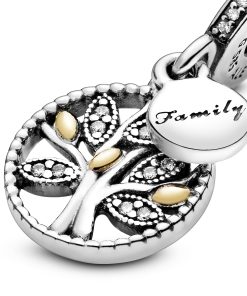 Celebrate all the generations of your family with this Pandora family tree charm. Hand-finished with 14k gold detailing and shimmering stone-embellished leaves. this sterling silver charm is complemented with a miniature pendant engraved with ‘family’. A charming gift idea that will be cherished by all your loved ones.