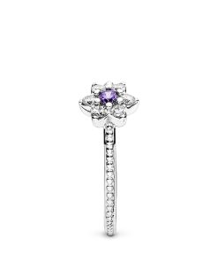 Embrace the floral trend with this hand-finished flower ring in sterling silver by PANDORA. complete with a brilliant purple centre. sparkling stones and beading. Create a dazzling posy by stacking this forget me not with other flower rings.
