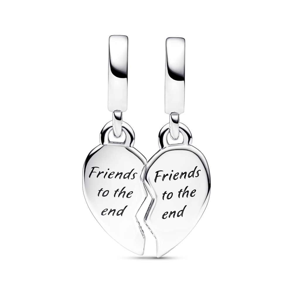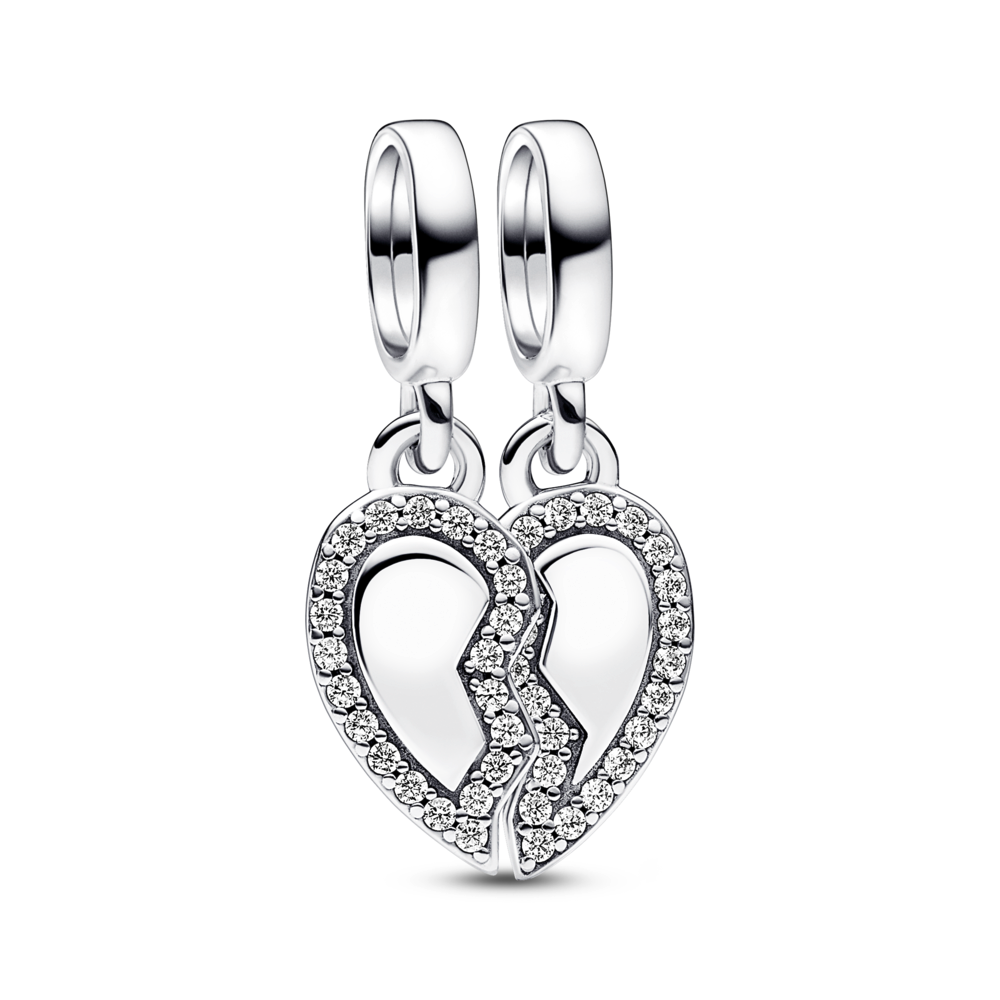 Splittable heart sterling silver dangle with clear cubic zirconia