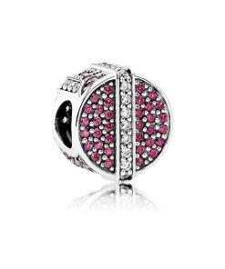 Featuring sparkling red accents and an ornate bow. this glittering round gift box charm in sterling silver captures the excitement of the festive season.