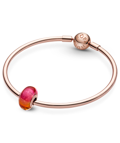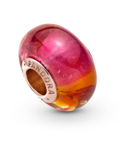 Add a pop of colour to your Pandora Moments bracelet with the Glittering Sunset Murano Glass Charm. Iridescent with transparent glitter. pink. yellow and orange Murano glass recall deep summer sunsets and a Pandora Rose (14k rose gold-plated unique metal blend) core adds additional warmth. A subtle hint of shimmering glitter catches the light just right at any time of the day. Mix and match with other colourful Murano charms for a stunning effect.