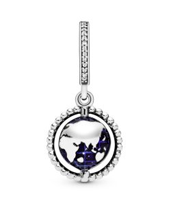 Let your love of travel shape your style with this globe charm. The hand-finished piece is shaped as the Earth and spins on its beaded axis. The globe charm features hand-applied shimmering blue enamel for a water-like finish. Thread it on your favourite Pandora Moments bracelet together with other travel-inspired charms that channel your wanderlust for a globetrotter look.