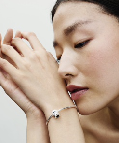 Ghost sterling silver charm with black crystal and shimmering white glow in the dark enamel