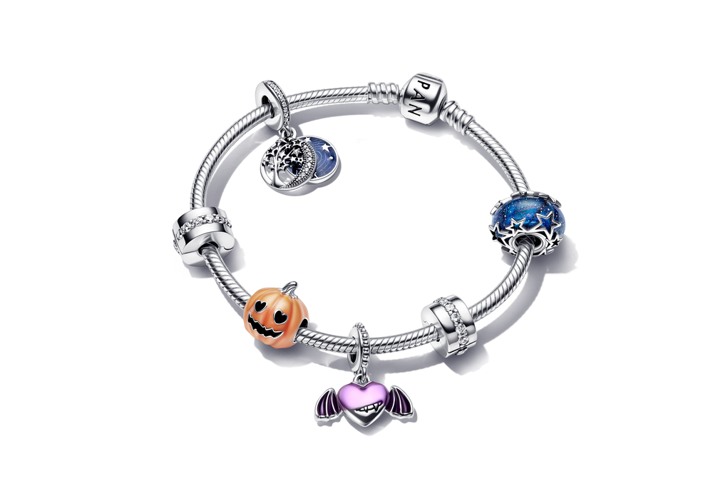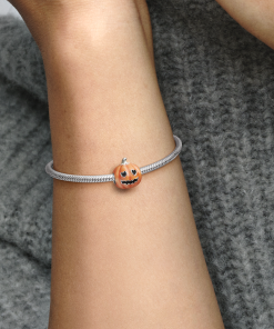 This delightful Glow-in-the-dark Spooky Pumpkin Charm in sterling silver is the perfect Halloween friend. Intricately detailed with a spooky face and heart-shaped eyes. this enamel-painted charm turns dark green when the lights go out – as if by magic. Get into the spirit of the scariest time of year by combining it with other holiday charms for a stylish Halloween look.