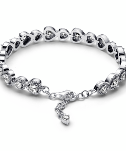 Hearts sterling silver bracelet with clear cubic zirconia