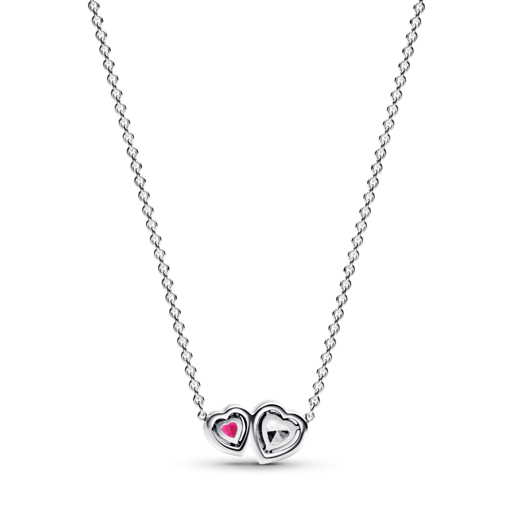 Hearts sterling silver collier with cherries jubilee red crystal and clear cubic zirconia