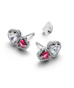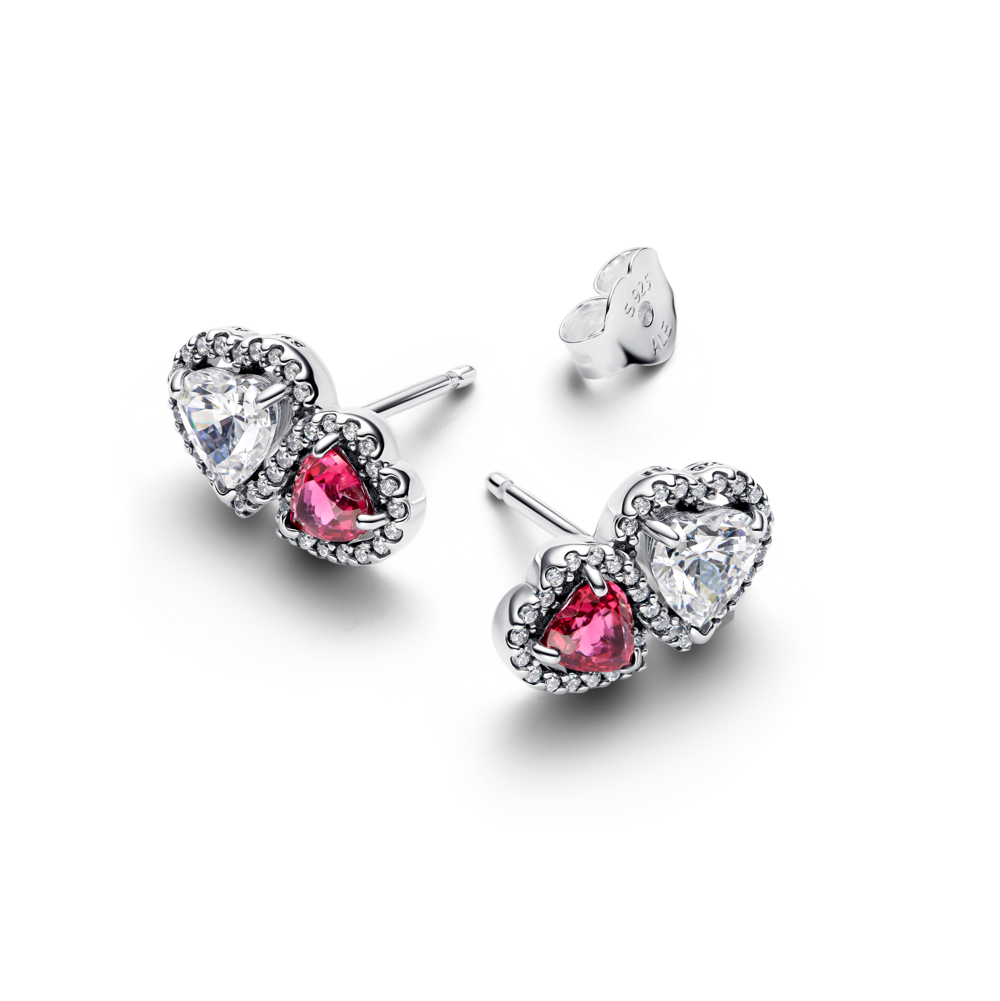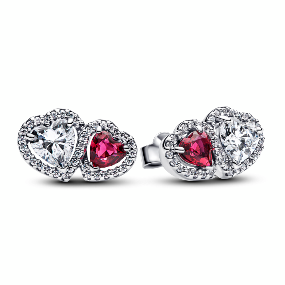 Hearts sterling silver stud earrings with cherries jubilee red crystal and clear cubic zirconia