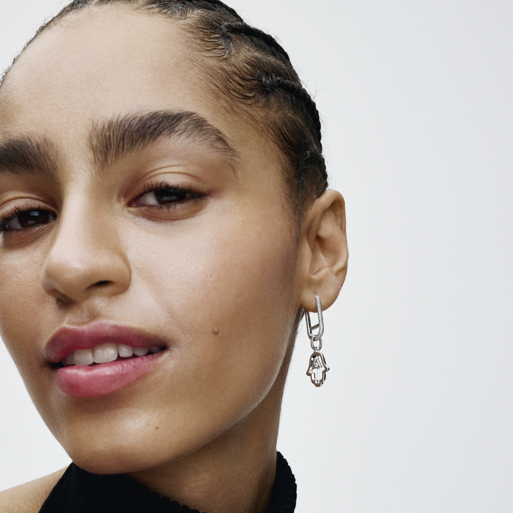 Hamsa hand sterling silver medallion with clear cubic zirconia