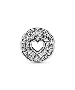 Celebrate an important anniversary with this sterling silver charm. The button-shaped piece is centered on each side with a cut-out heart surrounded by pavé cubic zirconia for a hint of sparkle. The timeless design looks equally beautiful on all Pandora Moments bracelets – and you can even string it on a necklace as a pendant. It’s engraved on the side with the words Happy Anniversary. making it an ideal gift to celebrate a milestone.