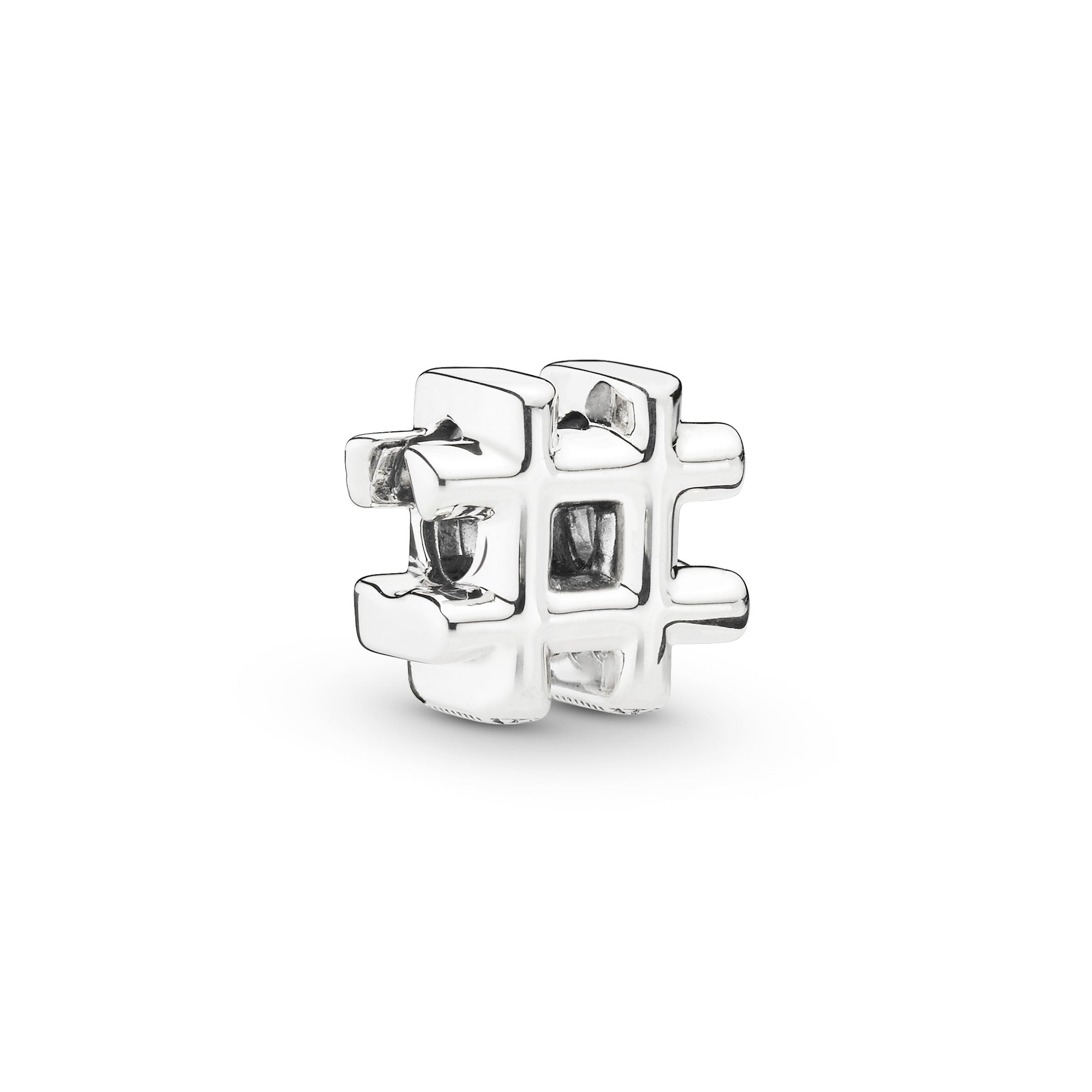 Master the art of using hashtags beyond your SoMe profile with this sterling silver hashtag charm. The perfectly proportioned piece is ideal for adding emphasis to bracelet stylings or for punctuating a necklace. Tag your chosen carrier for likes from admiring eyes.