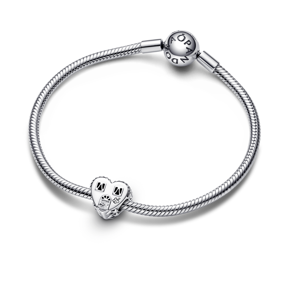 Celebrate home. sweet home with our Heart House Happy Place Charm. Crafted in sterling silver. this graphic piece features a heart-shaped house with windows. doors and an engraved bee detail to evoke the feeling of a home filled with joy. The engraving on the back reads. This is our happy place. Wear this charm to remind yourself that wherever in the world you are. there’s no place like home.