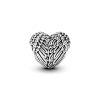 Show your support for loved ones or your love of heart shapes with this hand-finished openwork charm. Sterling silver hearts beautifully connect with 14k gold details and brilliant stones to illuminate you.