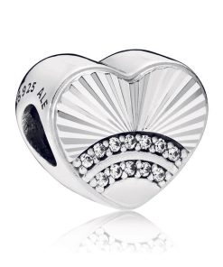 Put a little love into your look with our sterling silver heart charm. In a nod to Art Deco. it’s detailed with two arched rows of cubic zirconia and a raised pattern that lends dimension to the piece. The hand-finished charm is a perfect way to wear or share the love on Pandora Moments bracelets. You can even try styling it as a necklace pendant on a favourite chain.