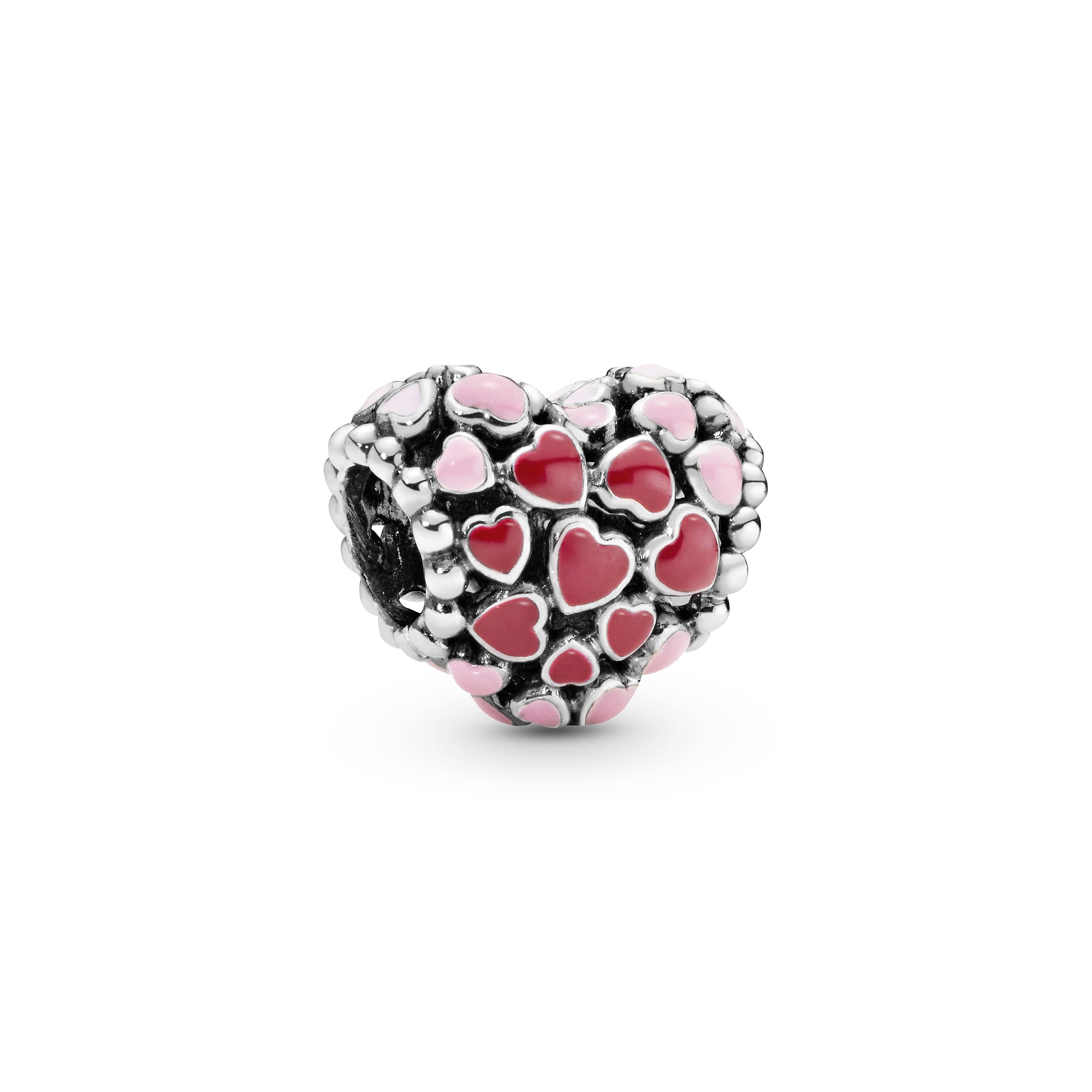 Put this charm at the heart of your style. Finely crafted in sterling silver. this heart-shaped charm is covered with romantic pink and red enamel hearts. The hand-finished style looks stunning on Pandora Moments bracelets. Share the love by giving it to someone special or keep it for yourself. adding to your growing collection of charms.