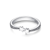 Jewellery trends may come and go. but this signature ring is a staple that will never date. The sleek band ring in sterling silver complements any style. Detailed inside and out with cut-out hearts and stamped with our logo. the minimalist design bears the hallmarks of Pandora. Wear solo or stack with similar pieces.
