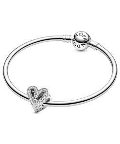 Carry your love with you as you go with this sterling silver Sparkling Freehand Heart Charm. designed to represent perfectly imperfect love. Who does the freehand heart bring to mind for you? 50 brilliant-cut clear cubic zirconia make love sparkle and cut-outs around the edges resemble xoxo. This charm is the perfect way to show the world what a gift the love in your life is. Style it with your other favourite Pandora charms.