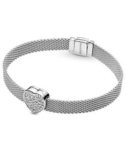 Wear your heart on your wrist with this love-inspired addition to the Pandora Reflexions collection. The ultimate emblem of love. this sterling silver clip charm shimmers as it shows your love of love to the world. with 43 pavé-set brilliant-cut clear cubic zirconia sparkling on the front. Wear this charm stacked with other Pandora Reflexions charms in the same tone for a classic look or mix with other metals for a contemporary and creative look.