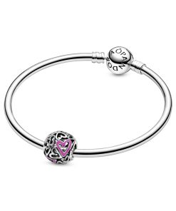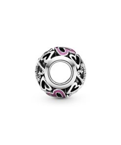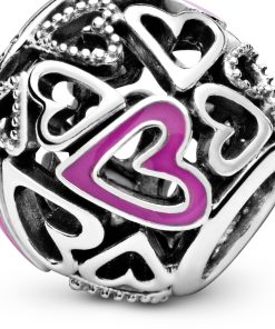 Hearts sterling silver charm with pink enamel