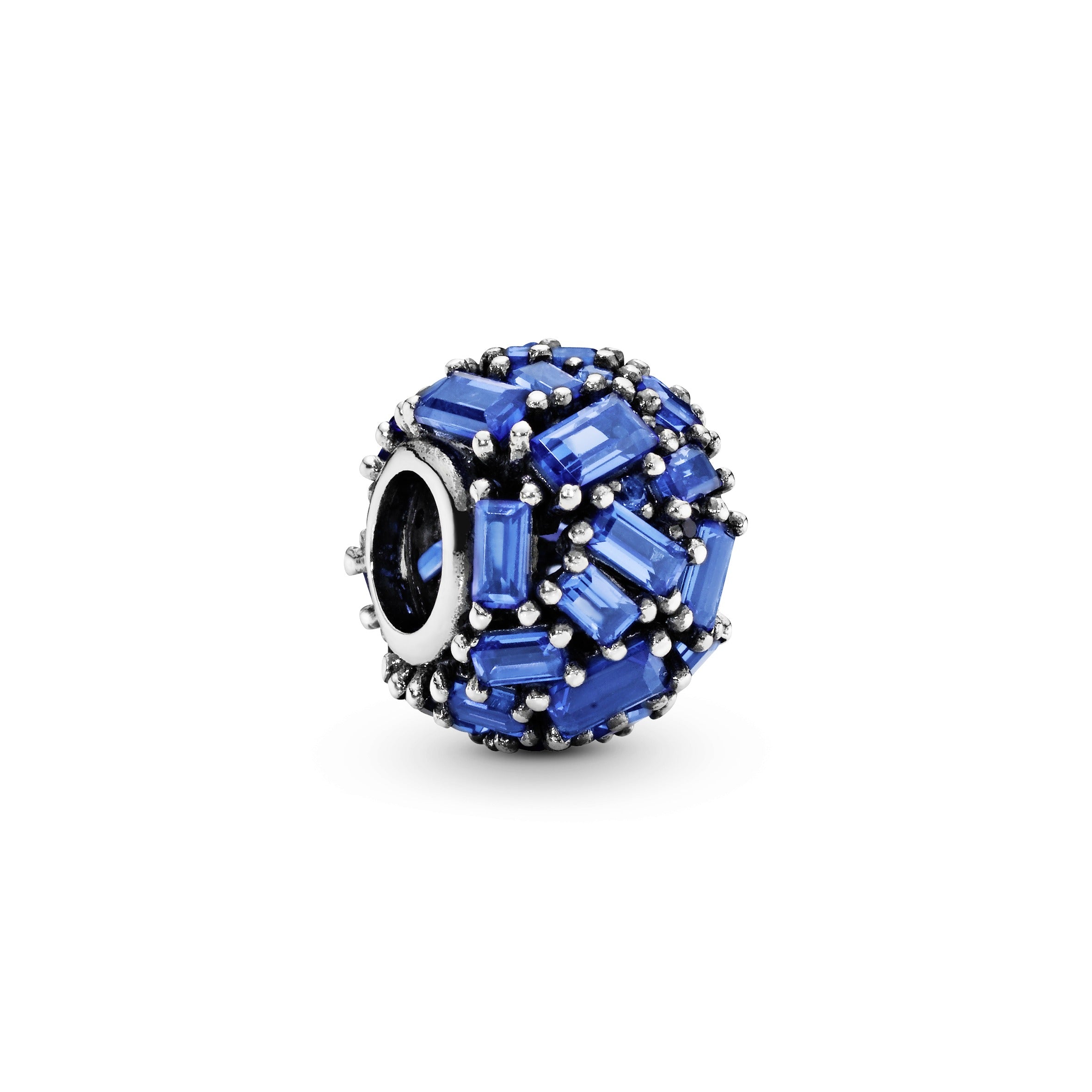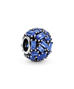 Ice cube silver charm with sea blue crystal