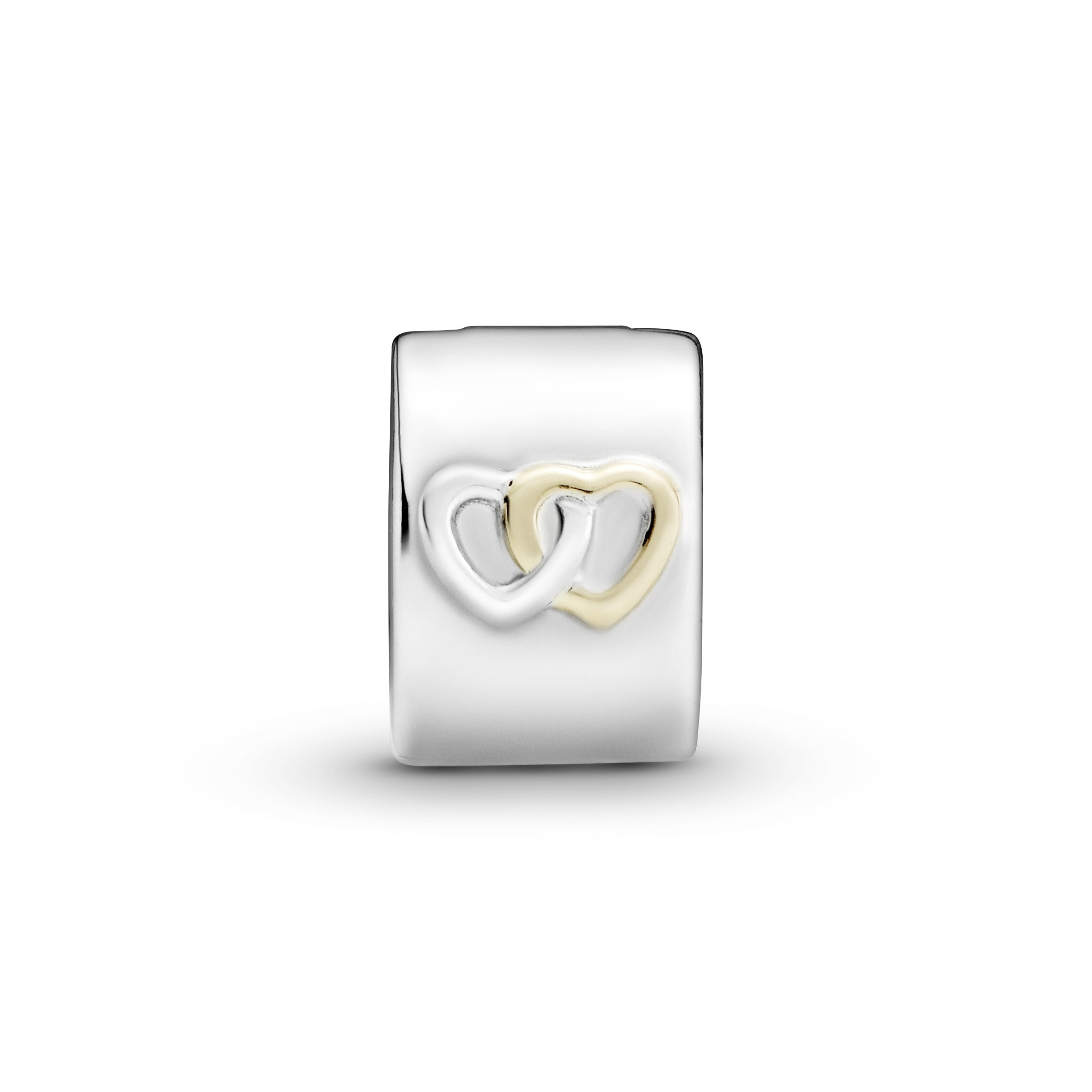 Our clip charms balance Pandora Moments bracelets. letting you evenly space your charms. This polished sterling silver style is minimally detailed with interlocked hearts as a symbol of a meaningful bond. one of which is cast from 14k gold for a luxe accent. It also makes a thoughtful gift.