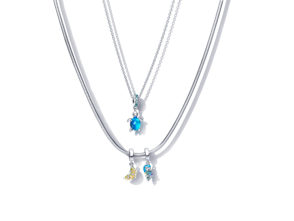 Let your heart soar above the treetops with this colourful Jungle Paradise Parrot Dangle Charm. This tropical bird dangle charm features a lovable parrot in sterling silver. finished with hand-applied enamel in rich blue. green and yellow shades. Add this little blue bird to your favourite Pandora bracelet or charm holders and lose yourself in dreams of a tropical paradise.