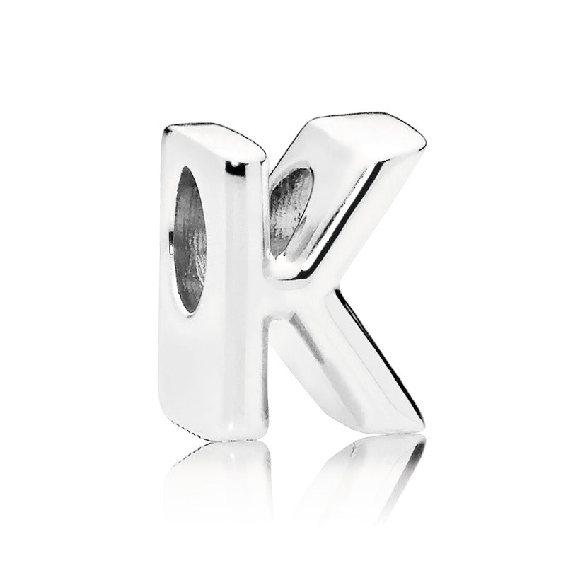 Tell your style story through our letter charms that let you spell out the words that mean the most to you. Monogram your Pandora Moments charm bracelet with important initials or create a personal message with the letter K. The reversible sterling silver charm is polished on the front and feature raised hearts and beads on the back. Add the letter A to your charm collection or gift it to someone that’s got a special connection to the letter.