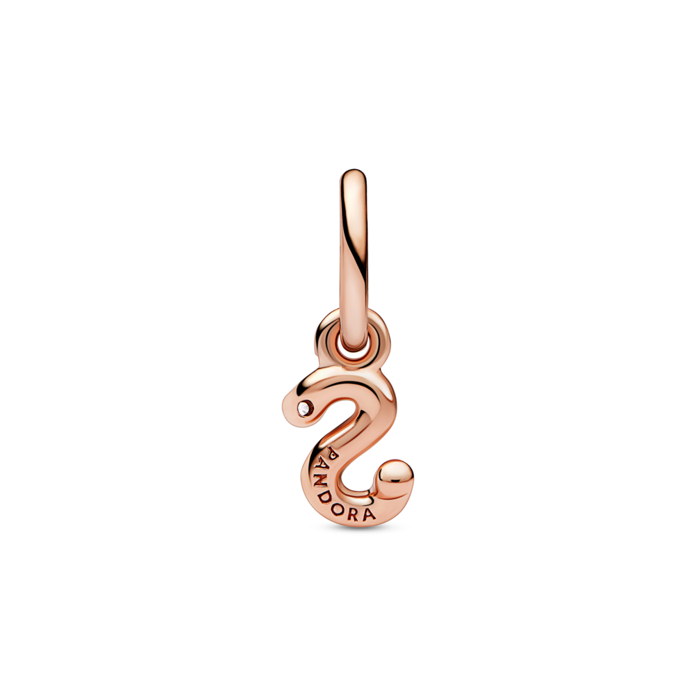 Special features: Three-dimensional bend wire shaped like a s; Pandora logo engraved on back; stone set in front of the letter; oval-shaped closed bail.