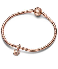 Special features: Three-dimensional bend wire shaped like a w; Pandora logo engraved on back; stone set in front of the letter; oval-shaped closed bail.