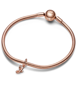 Special features: Three-dimensional bend wire shaped like a y; Pandora logo engraved on back; stone set in front of the letter; oval-shaped closed bail.