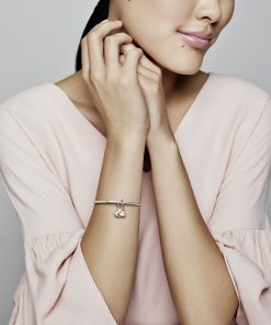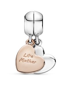 Wear a keepsake of a special mother-daughter bond with this two-tone dangle. It features a Pandora Rose (our 14k rose gold-plated unique metal blend) heart engraved with Like mother and a sterling silver heart engraved with Like daughter. The bail is decorated with a black enamel heart that becomes complete when the two pieces are placed together. It’s the perfect piece to share and wear to express your unbreakable bond.