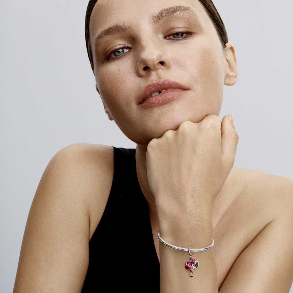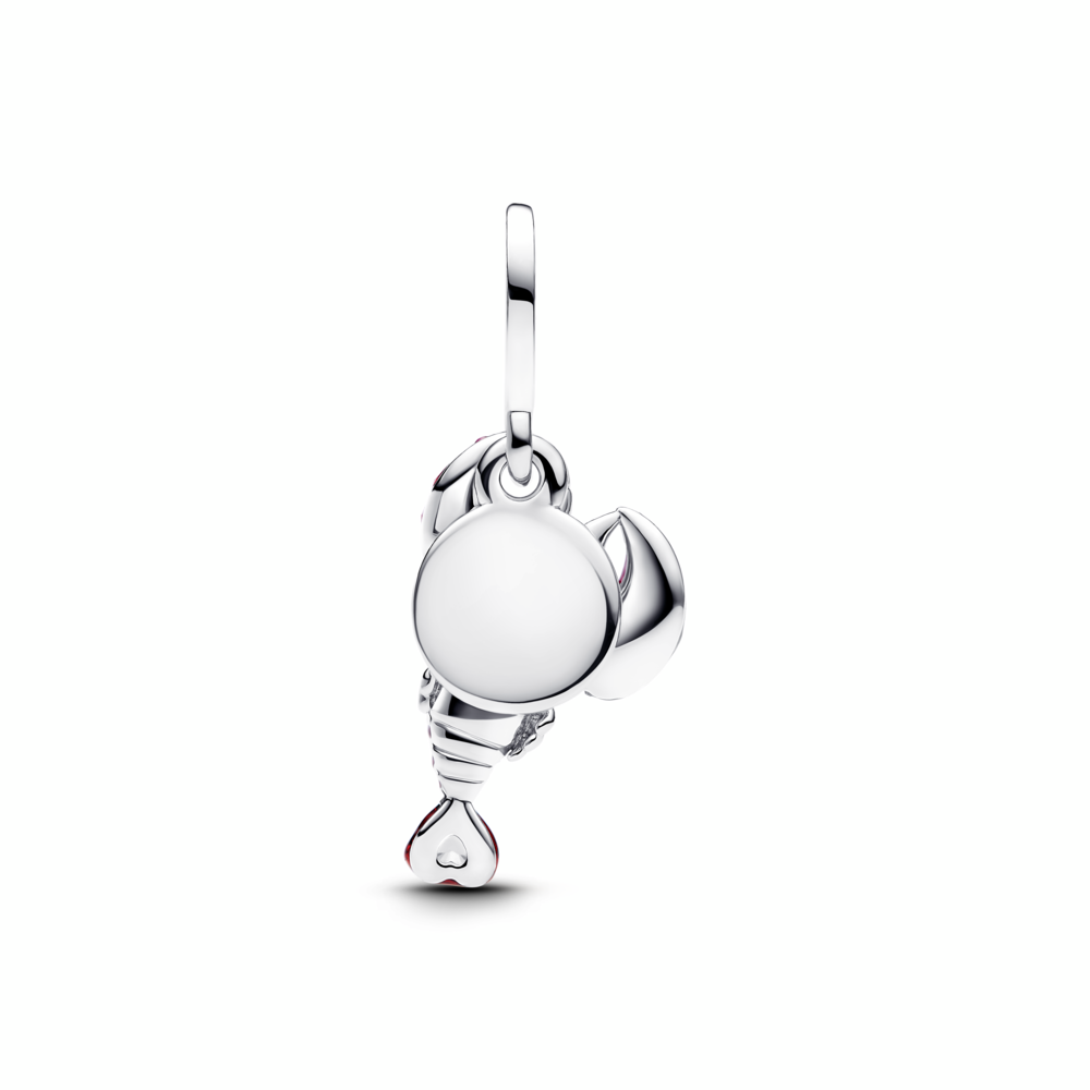 Love lobster sterling silver double dangle with clear cubic zirconia. black. glittery red and pink enamel