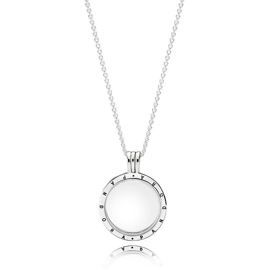 This medium-sized PANDORA floating locket pendant in sterling silver and mineral glass is strung on a 60cm chain necklace. adjustable to 50cm and 40cm.