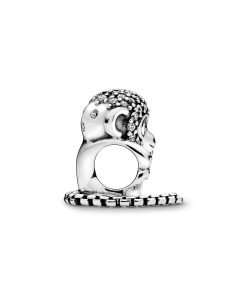 The sparkling cheeky monkey charm is detailed with blue stone eyes and a stone-embellished head. The dangling chain tail and heart-embellished feet underpin the cute appeal. The money charm threads onto your Pandora Moments bracelet or necklace through its body. revealing the surface of your chosen carrier through its belly. Style with other animal charms to create a menagerie of personal style.