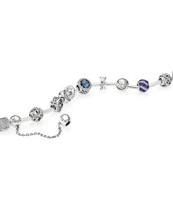 Capture the mystery of the night sky with this celestial sterling silver charm and bring it to your Pandora Moments styling. Detailed with midnight blue hand-painted enamel stars. a cubic zirconia crescent moon and twinkling accents. the sparkling charm adds a bit of magic to your look. The sides feature cut-out stars for an airy feel. Style it with other celestial pieces to create a star-inspired look or gift it to the star in your life.