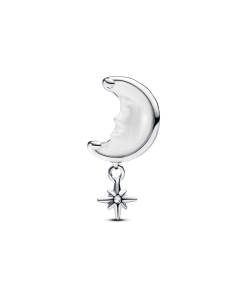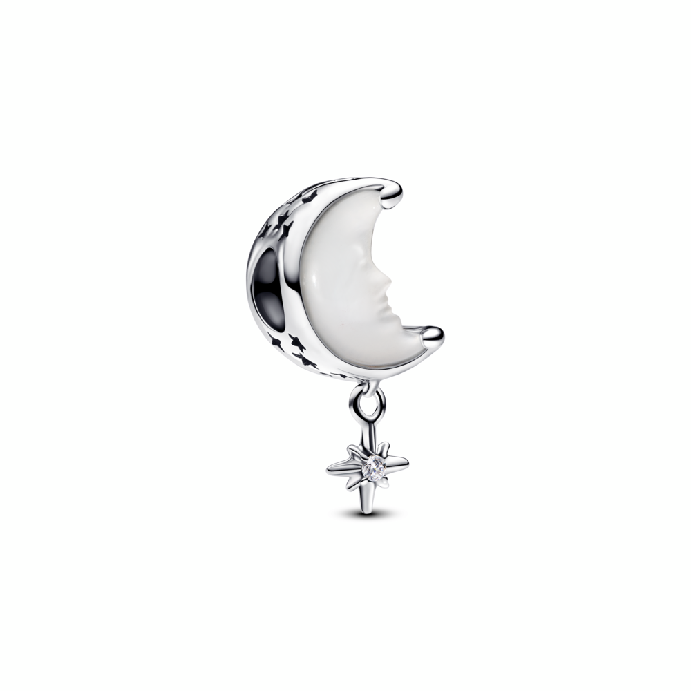 Moon and star sterling silver charm with white bioresin mother of pearl and clear cubic zirconia