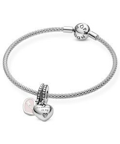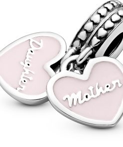 Celebrate the special bond between mother and daughter with this pretty split pendant charm. Crafted in polished sterling silver. it is hand-finished with delicate pink enamel and the words ‘you are always in my’ with a sparkling cubic zirconia heart. This Pandora mother and daughter charm comes as two halves – allowing you to wear one half each or create a beautiful love heart by joining the two halves together. A memorable Mother’s Day gift idea.
