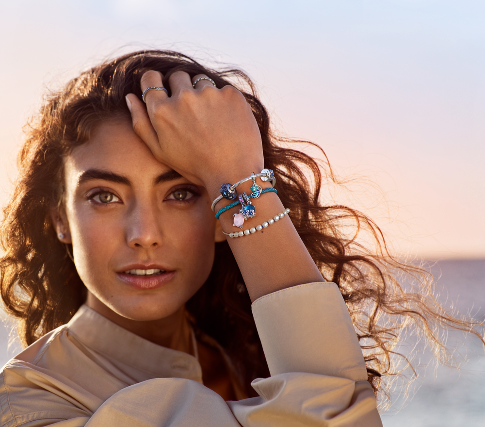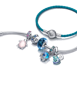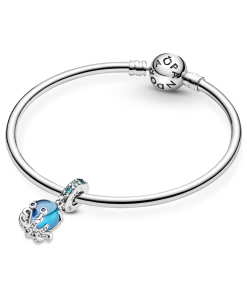Explore the wonderful world of the deep blue sea and add this cute octopus charm to your Pandora Moments jewellery. This dangle charm features beautiful two-toned green and blue Murano glass with a wavy openwork pattern on the back in sterling silver. The sterling silver tentacles are curled up. showing the playful nature of this friendly and mysterious ocean creature. Man-made crystals in three shades of blue bring some extra sparkle to the bail and the octopus’s eyes.