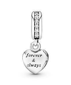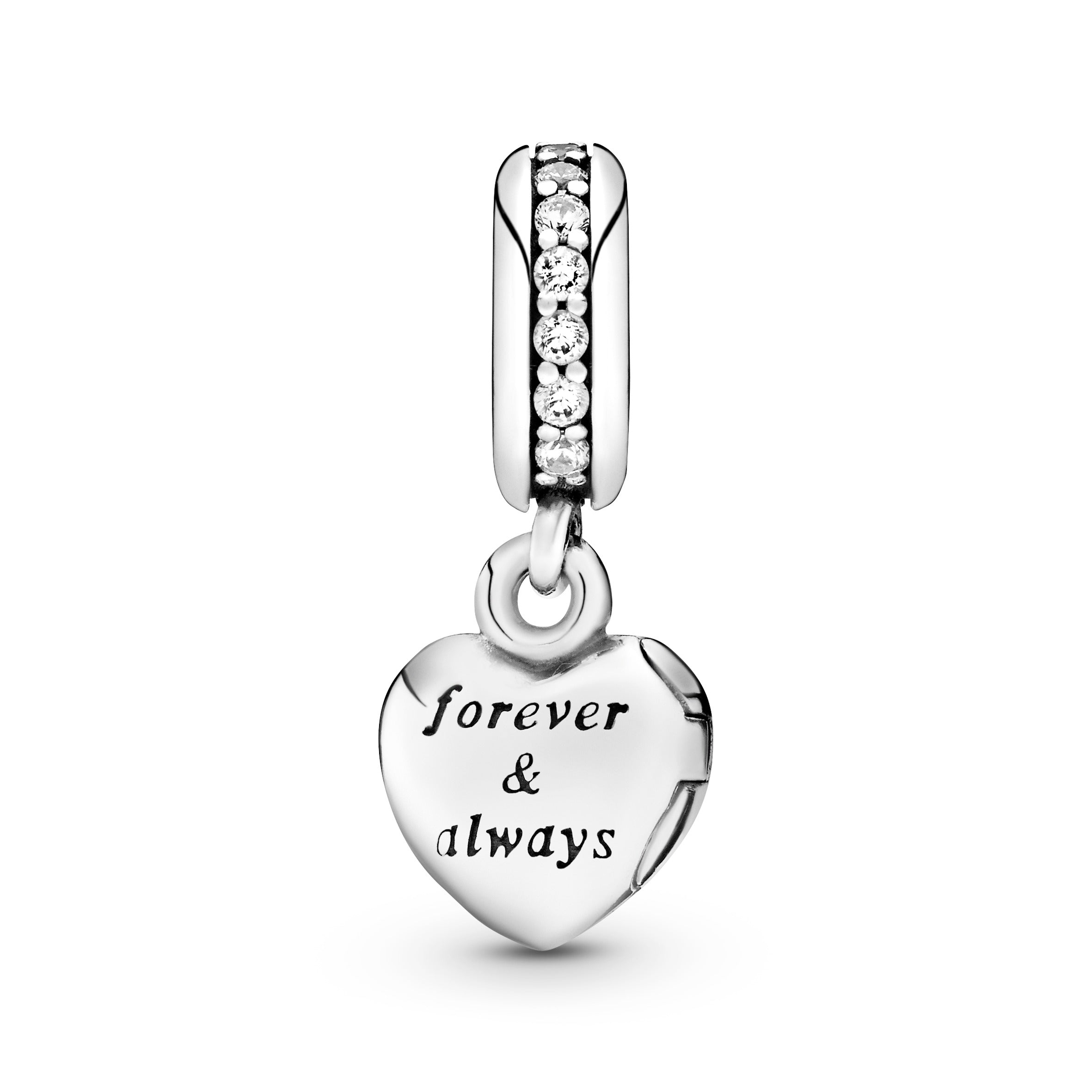 Surprise a wonderful wife with a lasting token of your appreciation with this sterling silver dangle charm for Pandora Moments bracelets. Suspended from a bail accented with cubic zirconia. it’s shaped as a heart locket and engraved with My beautiful wife. forever and always. There won’t be a dry eye left in the house.