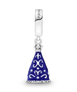 The principal patroness of Brazil. Our Lady of Aparecida is a famed clay statue and religious icon. Our sterling silver dangle charm is shaped to resemble the Catholic effigy and detailed with a blue enamel robe and beaded crown. Engraved with N. S. Aparecida in reference to her Brazilian moniker. Nossa Senhora Aparecida. it’s a meaningful addition to a Pandora Moments bracelet. You can even wear it as a pendant on a necklace chain.
