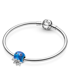 Explore the ocean with this lovable octopus charm. featuring a unique bubble-and-wave enamel effect in shades of blue. hand-applied over sterling silver. Two smooth blue man-made crystals form the kind. clever eyes of the octopus. and its tentacles are decorated on the bottom with raised heart details. Add this charm to your jewellery lineup and dive into a dream of the deep blue sea.