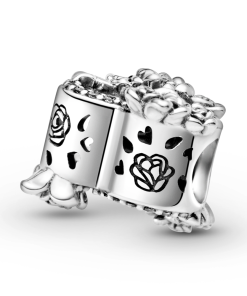 Express your true feelings with the Open Heart & Rose Flowers Charm. Hand-finished in sterling silver. this open heart design features intricate detailing. The heart-shaped front and back frames are embellished with decorative rose flower and leaf details and clear stones for added sparkle. The sides of the charm include rose flower engravings as well as rose petal and heart cut-outs. Inspired by the epic love story of Romeo & Juliet. gift someone special this timeless design.