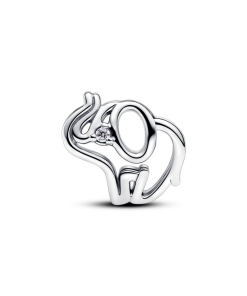 Elephant sterling silver charm with clear cubic zirconia