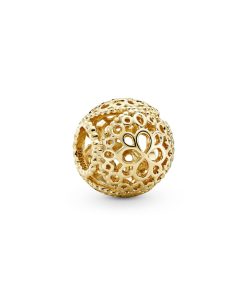 Must-have accessories for style-savvy women. charms reveal personal stories and unique style. This openwork iteration in 14k Gold Plated . our unique metal blend with 18k gold plating. is detailed with floral silhouettes that lend an airy feel to Pandora Moments bracelet. Keep your look natural and wear with other favourite flower charms from the collection.